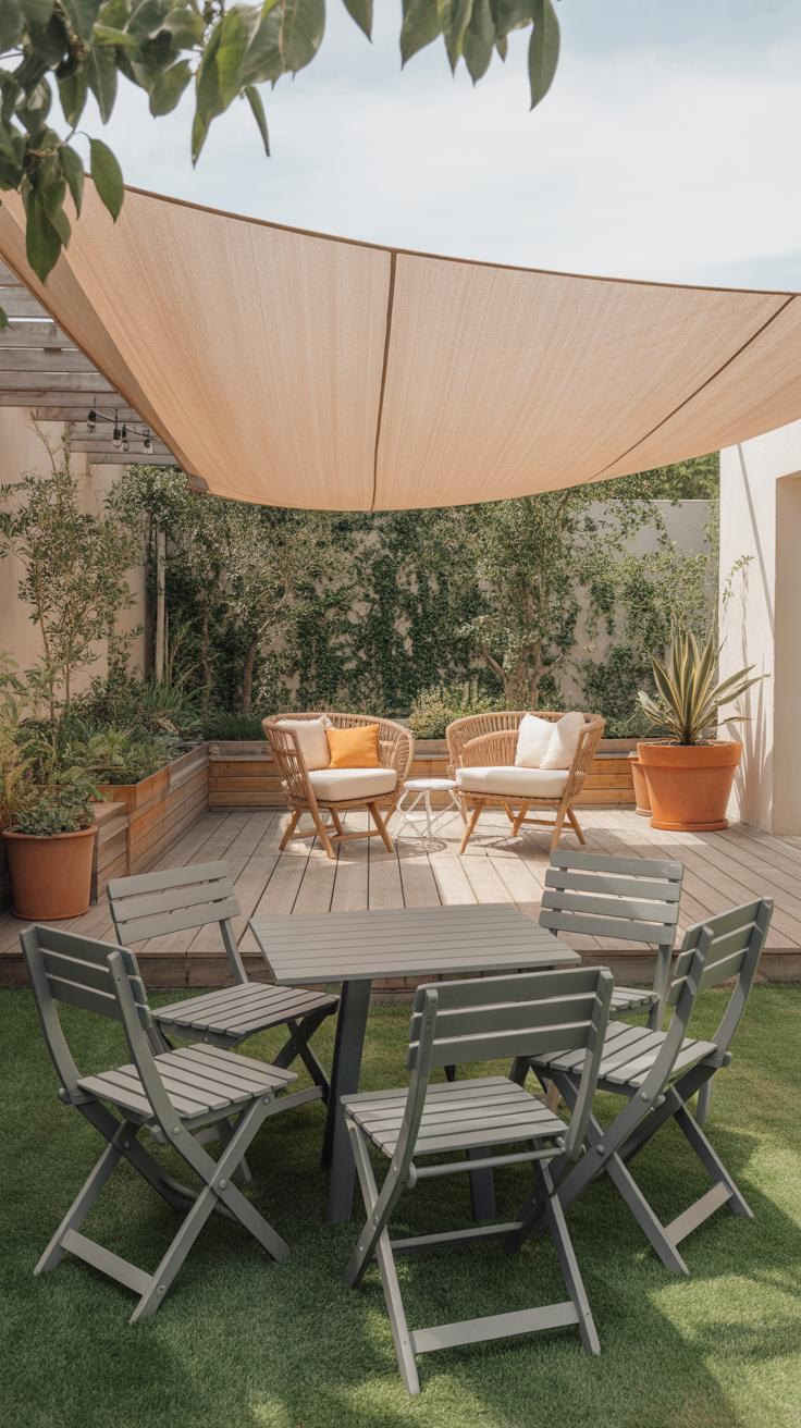 Portable furniture plays a big role here. Folding chairs, stackable stools, or lightweight tables let you rearrange quickly. Picture moving a small table with wheels closer to the shade for your morning coffee, then rolling it away to create room for the kids’ games. Even an outdoor storage bench can double as seating and a toy box.
