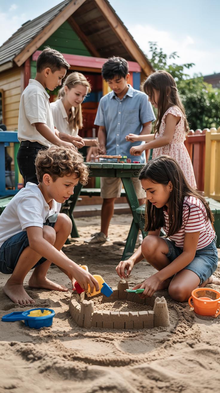 Select equipment that invites multiple children to play at once. Seesaws work well because they need two to balance and move together. Large sandboxes provide a tactile spot for building and sharing toys. Group swings let children wait their turn or swing side by side, encouraging chatting and cooperation.
