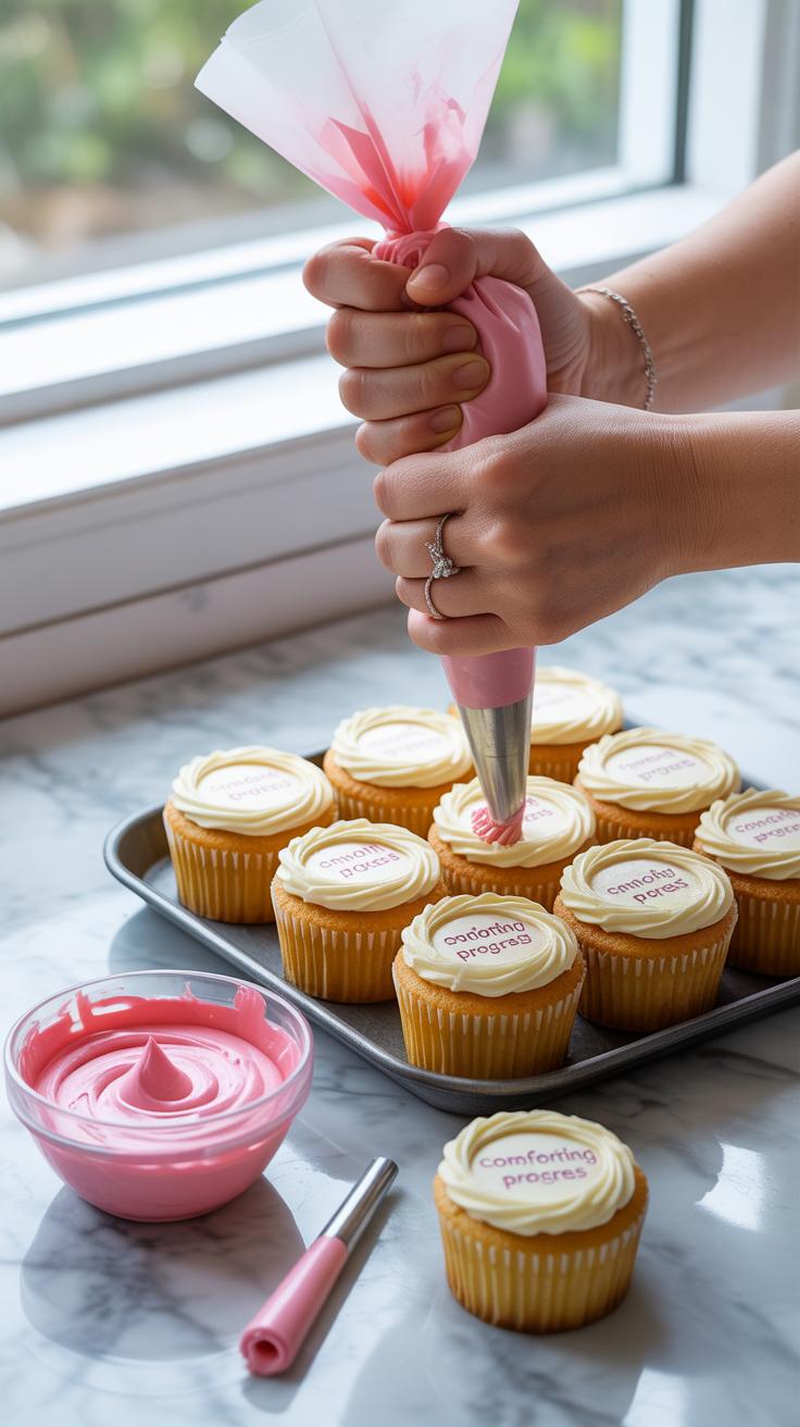 Using a piping bag might seem intimidating, but once you get the hang of it, it’s quite straightforward. Fill your bag about halfway with icing—too full, and you lose control; too empty, and it feels awkward. Twist the top to keep pressure steady as you squeeze.