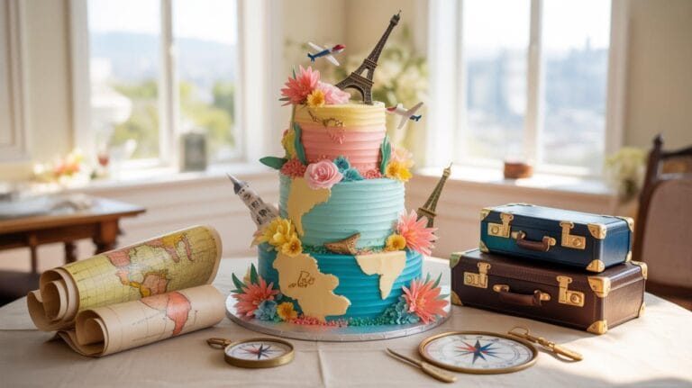 Discover travel-inspired wedding cake designs that tell your love story through maps, postcards, and passport details. Explore custom fondant artistry, vintage atlas aesthetics, and global flavors that celebrate your shared adventures and cherished destinations.