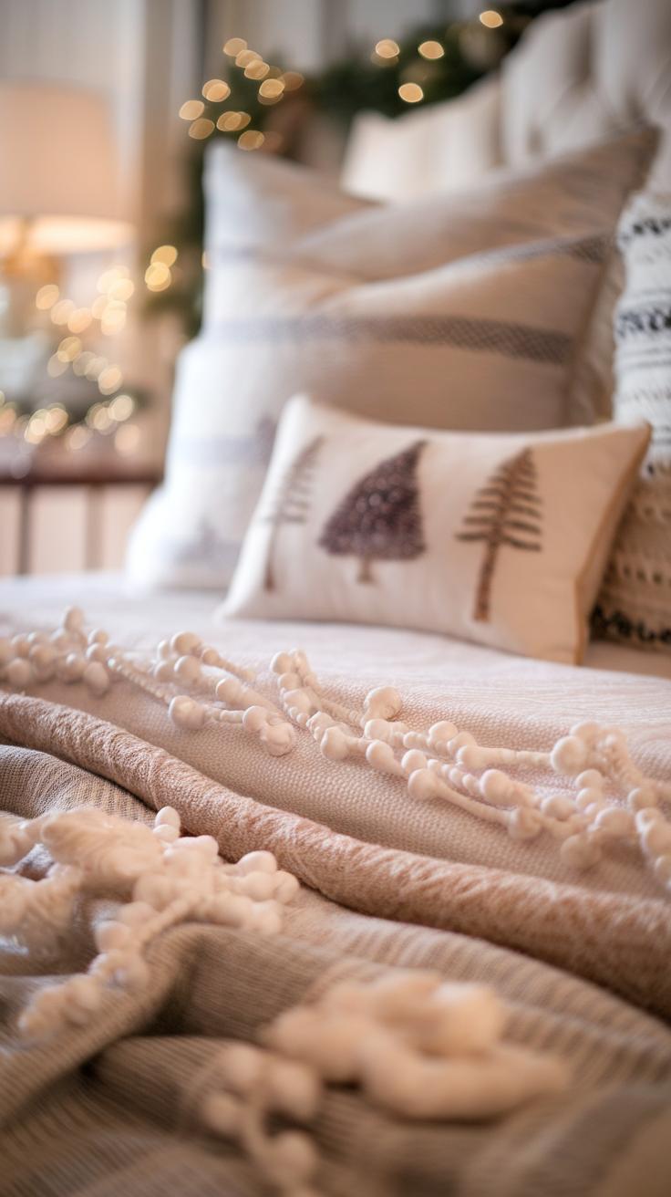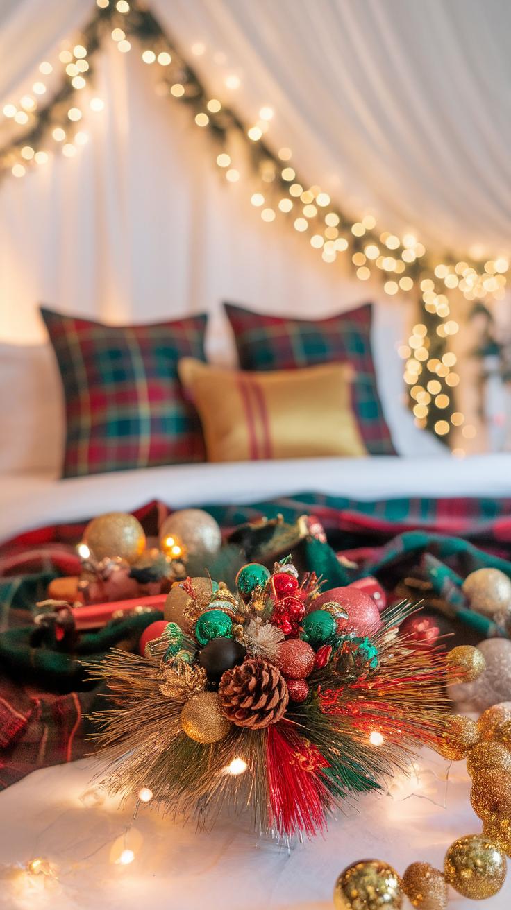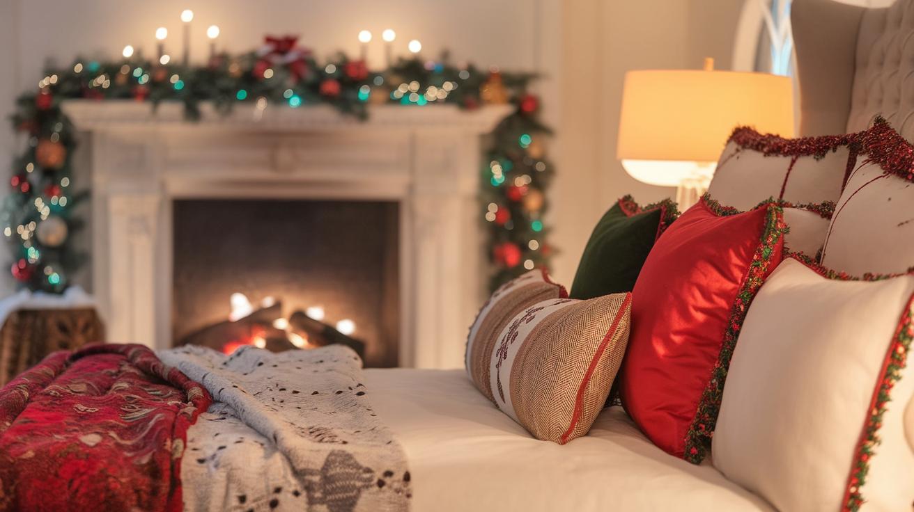 Enhance the overall theme with soft, twinkling fairy lights draped over the headboard or along the bedframe. This simple touch creates a warm glow, perfectly complementing your holiday decorations. These tips will infuse your space with a cheerful holiday spirit while keeping it snug and cozy.