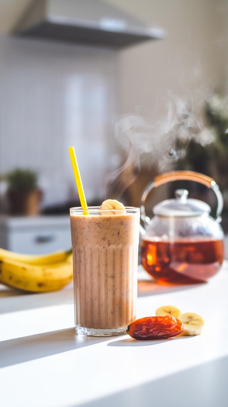Here’s a basic recipe: blend the soaked dates with 1 cup of milk or plant-based milk, a banana, and a handful of spinach. The dates add sweetness naturally. The banana offers creaminess, and spinach adds nutrients without altering taste much.