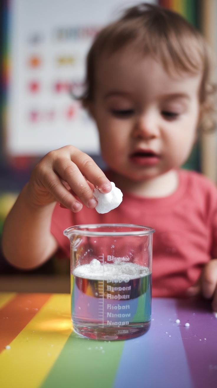 Try mixing water with substances like baking soda and vinegar for bubbly reactions that excite senses while explaining basic chemical changes. Pouring liquids of different densities, such as oil and water, creates visual layers that captivate children.