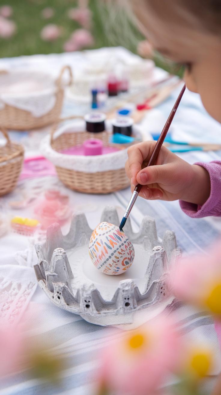 Ask guiding questions to prompt reflection, such as: What part of decorating did you enjoy most? Did your egg’s design tell a story or represent a feeling? This approach turns egg decorating into a personal and social activity rather than just a craft. Kids learn to value their creativity and respect different artistic expressions during this outdoor event.