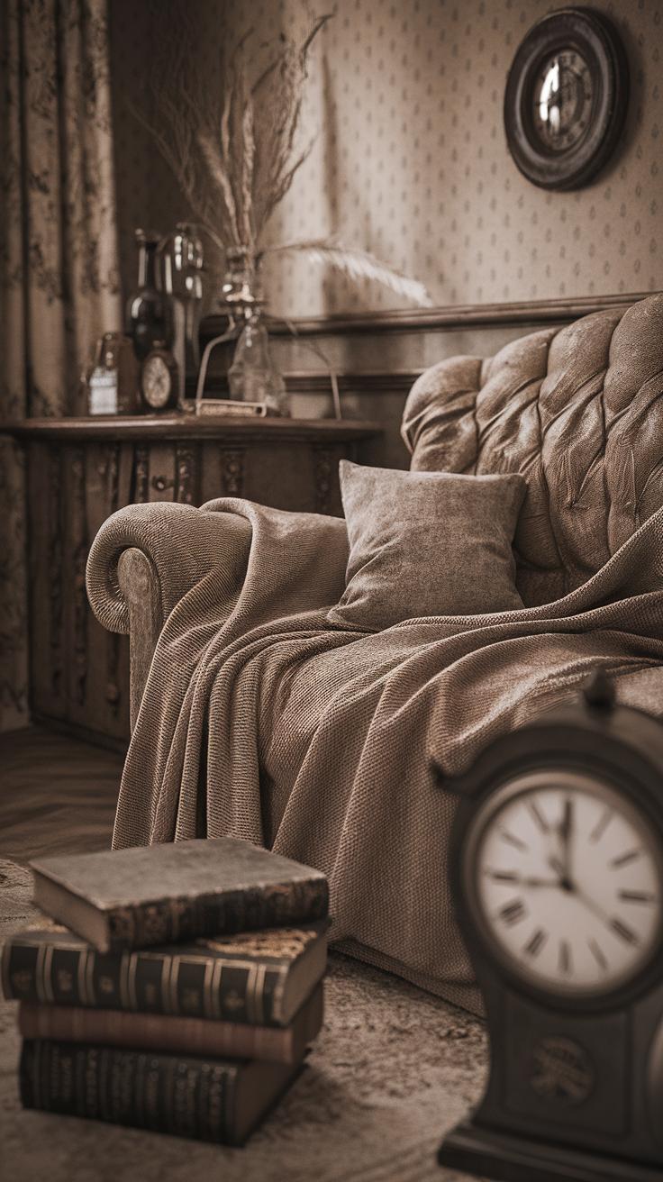 Integrate these nostalgic pieces into modern spaces by pairing them with contemporary elements. A vintage trunk can serve as a stylish coffee table while providing storage. Surrounding it with sleek, neutral sofas balances old-world charm with modern simplicity. To enhance the Grandmacore vibe, layer in decorative items like family photographs or handmade pottery. Each piece should evoke a sense of history and comfort, creating a cohesive look that feels both inviting and timeless.