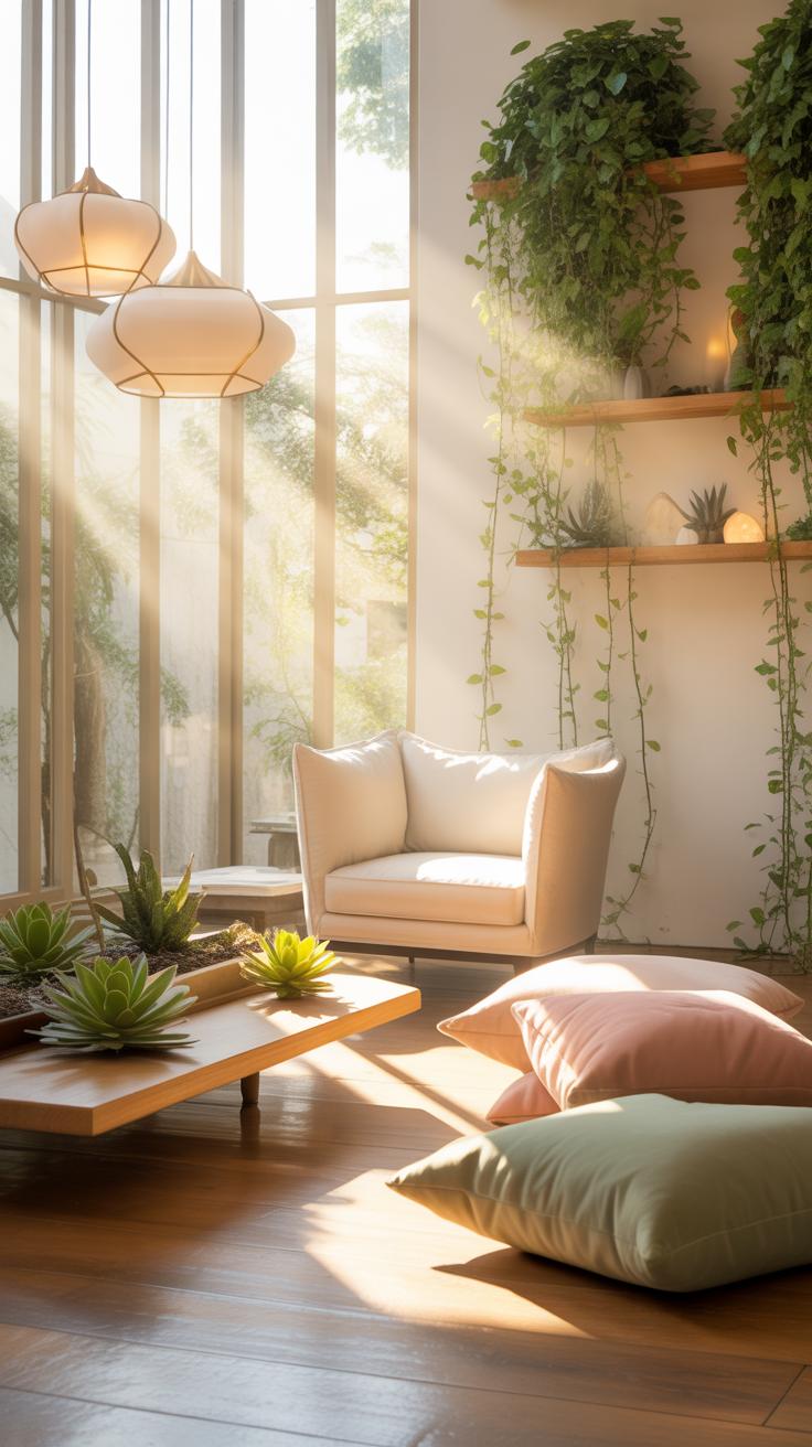 When arranging furniture, consider how you’ll move through the space. Clutter kills calm, so don’t pack the room full of stuff just because it fits. Keep pathways open and furniture spaced to avoid a cramped feeling. The less furniture you use, the fewer distractions you have, making it easier to focus on simply being. Sometimes less really is more when it comes to creating openness and peace. But hey, if you find yourself wanting a little nook or specific seating arrangement that feels comforting, go with your gut — this isn’t about strict rules.