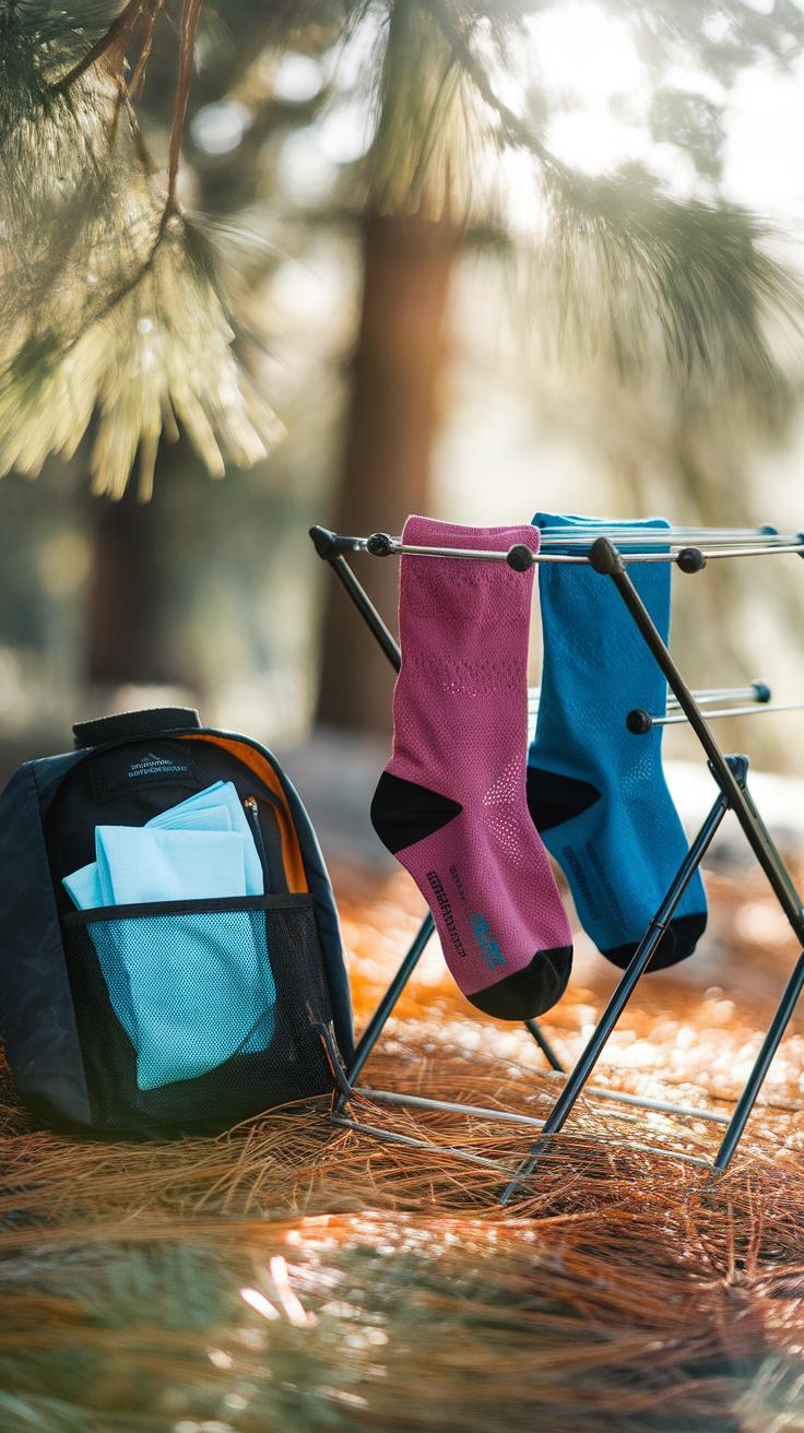 Find a spot with good airflow and sun exposure to dry clothes quickly. Hanging shirts and socks separately works best. Flip them occasionally to ensure even drying. If rain is expected, pack a light dry bag to keep clothes dry overnight. Do you check your clothes daily to spot areas needing a quick wash?