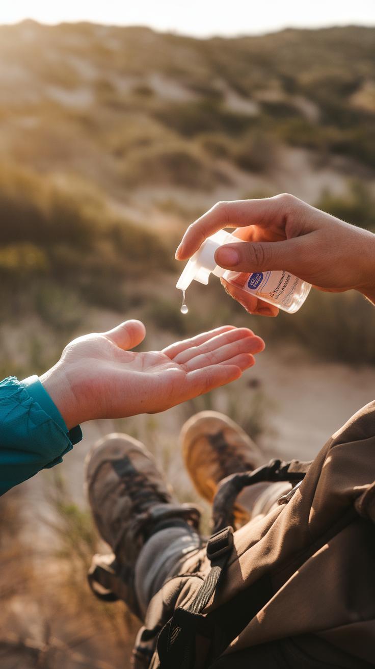 Keeping your hands clean on long hikes matters, especially before eating or after using the restroom. Without much water, you need reliable alternatives to stop germs from spreading. Hand sanitizer is your best friend here. Use a generous amount, about the size of a dime or nickel, and rub it into every part of your hands. Don’t forget under your nails and between fingers. Keep rubbing until the sanitizer dries to kill most bacteria.