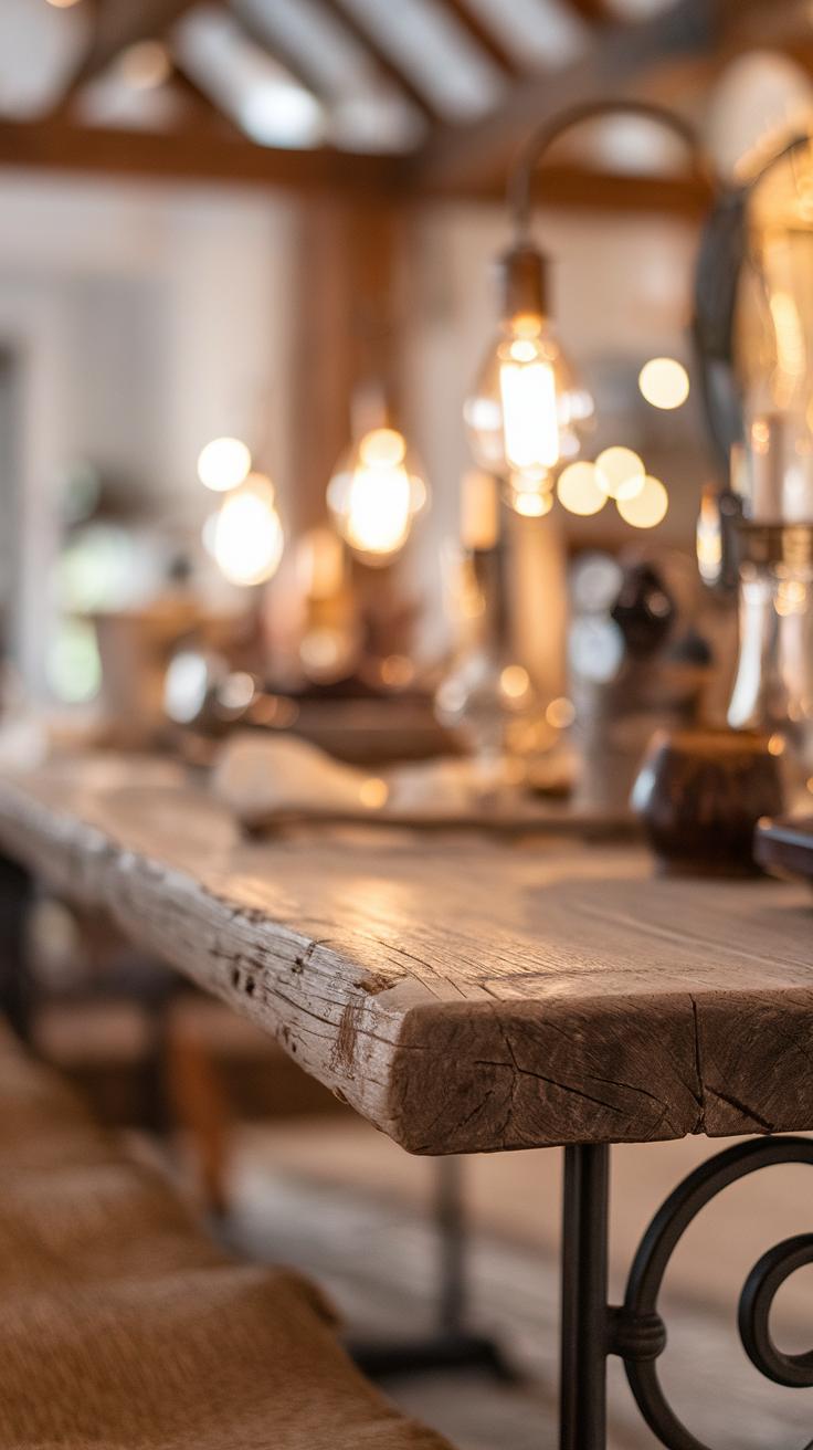 Joanna Gaines shows how rustic elegance can shine through with a mix of wood and metal. She often uses reclaimed wood for furniture and walls, bringing warmth and a hint of history. The textures and grain of the wood add character to any space. For example, a sturdy dining table made from weathered barn wood becomes a centerpiece in a kitchen, inviting family gatherings.