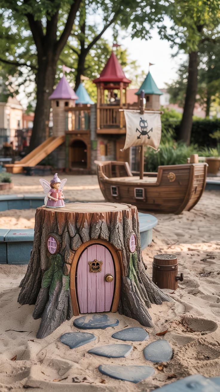 Incorporate playhouses or small themed structures to create a focal point where your child can invent stories and assume roles. These spaces can be simple wooden huts or tents that invite wearing costumes or hosting pretend tea parties. Think about themes that interest your child, such as castles, pirate ships, or space stations, to add excitement and encourage role-playing.