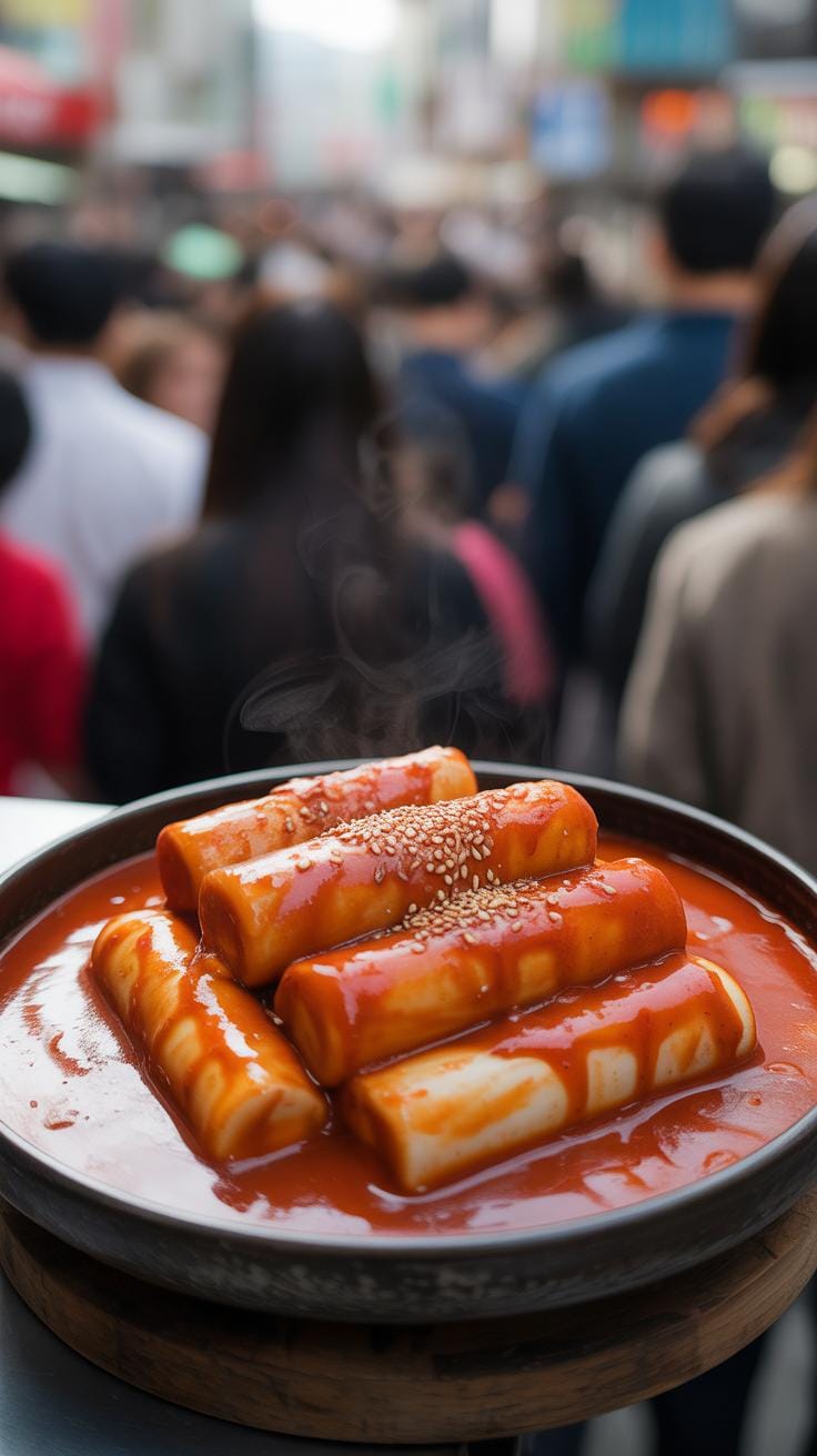 Tteokbokki is one of those street foods that you can’t easily forget once you try it. At its core, it’s chewy rice cakes simmered in a spicy, slightly sweet red chili sauce. This isn’t just any sauce—it’s made from gochujang, Korean chili paste, which gives it that recognizable kick. You’ll usually find fish cakes, boiled eggs, and sometimes green onions added to the mix. Honestly, this combo is what makes it so comforting and filling.