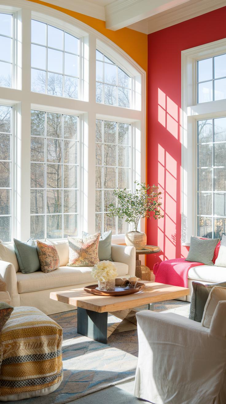 Changing your living room’s color scheme with the seasons makes it feel lively and welcoming. Each season brings unique colors that can inspire your choices. In spring, light pastels like soft greens and pale pinks evoke freshness. You can add colorful cushions or a new area rug in these shades. During summer, bright colors like sunny yellows or ocean blues can energize the space. Swap out heavy drapes for lighter fabrics in cheerful tones.