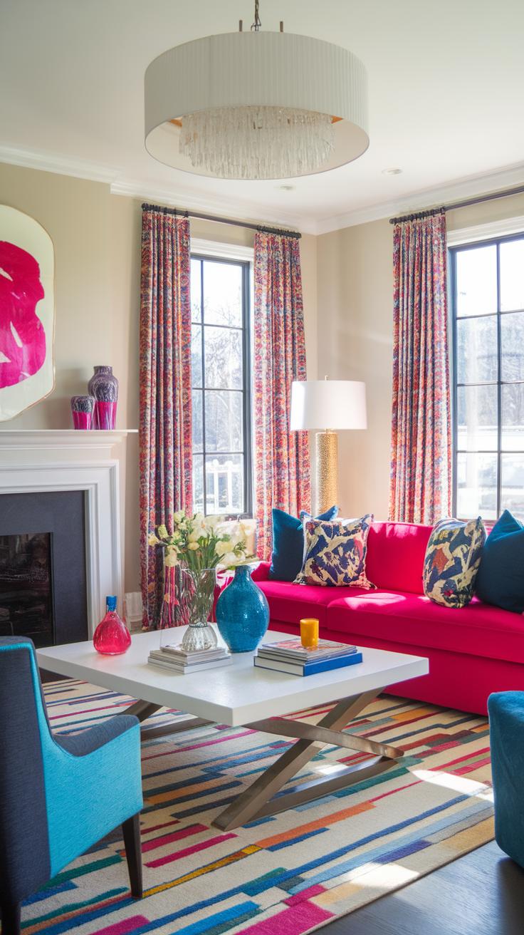 Introduce a contrasting color to give your palette a dynamic edge. A vivid red can stand out against a muted blue base, creating a lively atmosphere. This contrast makes your living room feel inviting and showcases your personality.