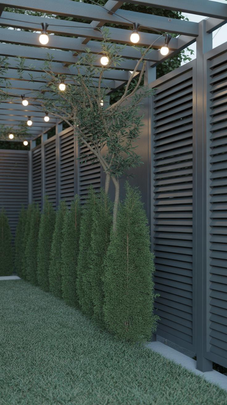 Screens offer flexibility, too. From slatted panels that provide partial views to woven metal screens that catch the breeze, these structures can break up the yard and create cozy corners. They don’t block space outright, which sometimes you might want to avoid if your yard is small or if you want an open feel.