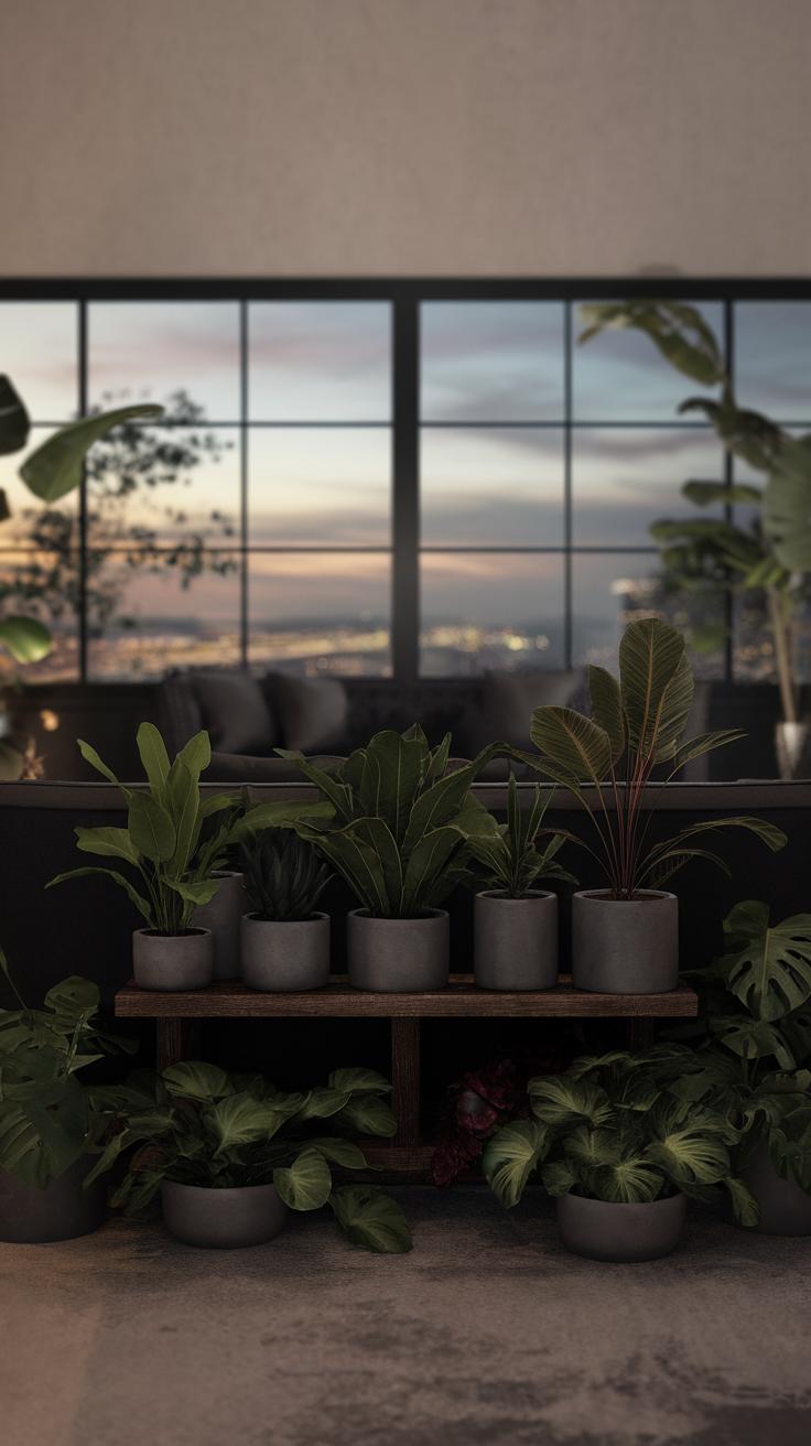 Introduce plants for color and life. Choose lush greenery in dark ceramic pots or metal containers. Ferns and snake plants thrive in low light while adding visual interest. Textures also play a key role; mix soft fabrics like velvet cushions with rugged materials like burlap or linen. This combination enhances the room’s emotional depth and creates a tactile experience.