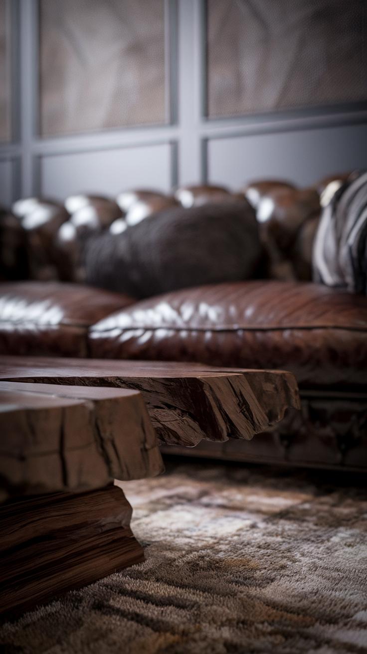 Using natural elements in a moody living room creates a warm and inviting atmosphere. Introduce rich materials like wood and stone to add depth. Consider choosing dark hardwood floors or deep-stained furniture, which provide an earthy touch and contrast beautifully with muted walls. You can also add stone accents around fireplaces or as part of your decor.