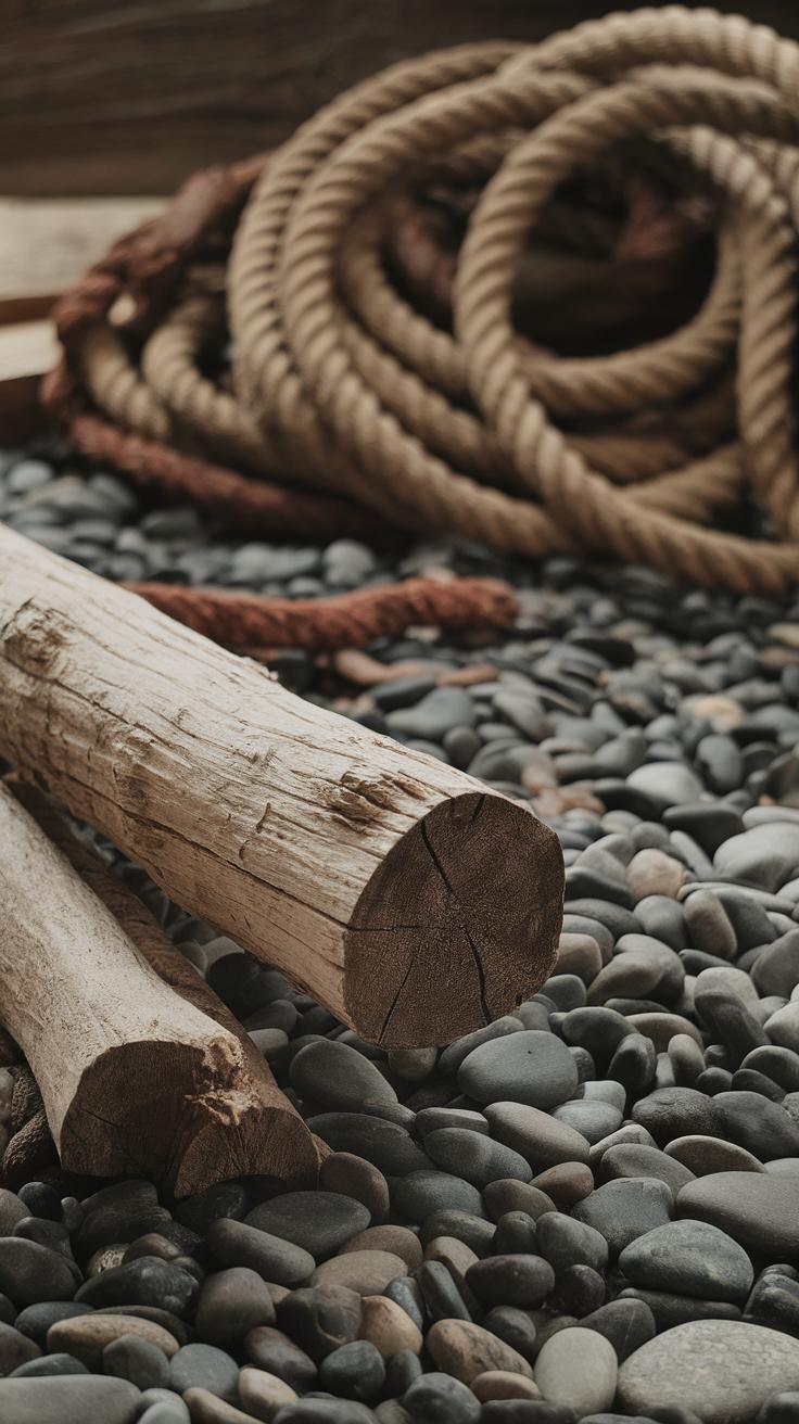 Start with sturdy, fallen logs arranged on the ground for climbing or balancing. Place flat stones nearby to create jumping paths. These natural materials blend into your yard and offer varied textures and heights to keep children engaged.