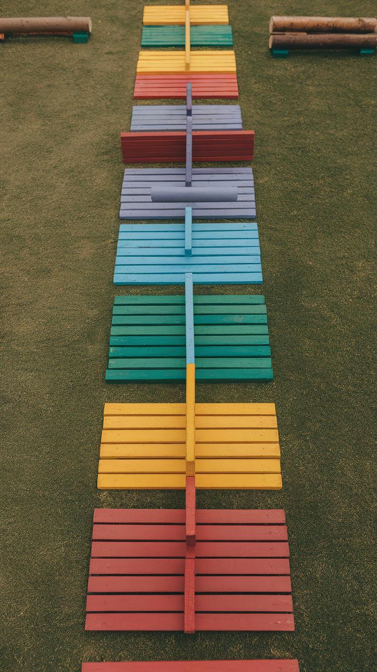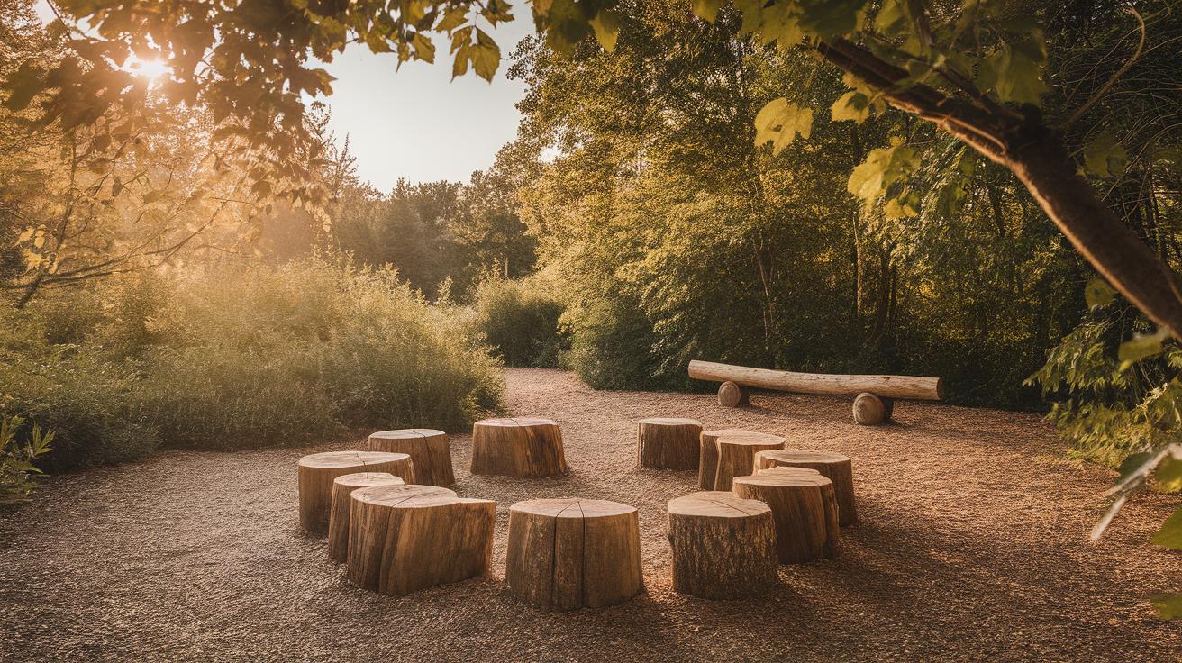 Use tree stumps of different heights as stepping posts or platforms. Arrange them in a line or a circle to create varied paths. Kids enjoy moving from stump to stump, improving balance and spatial awareness.