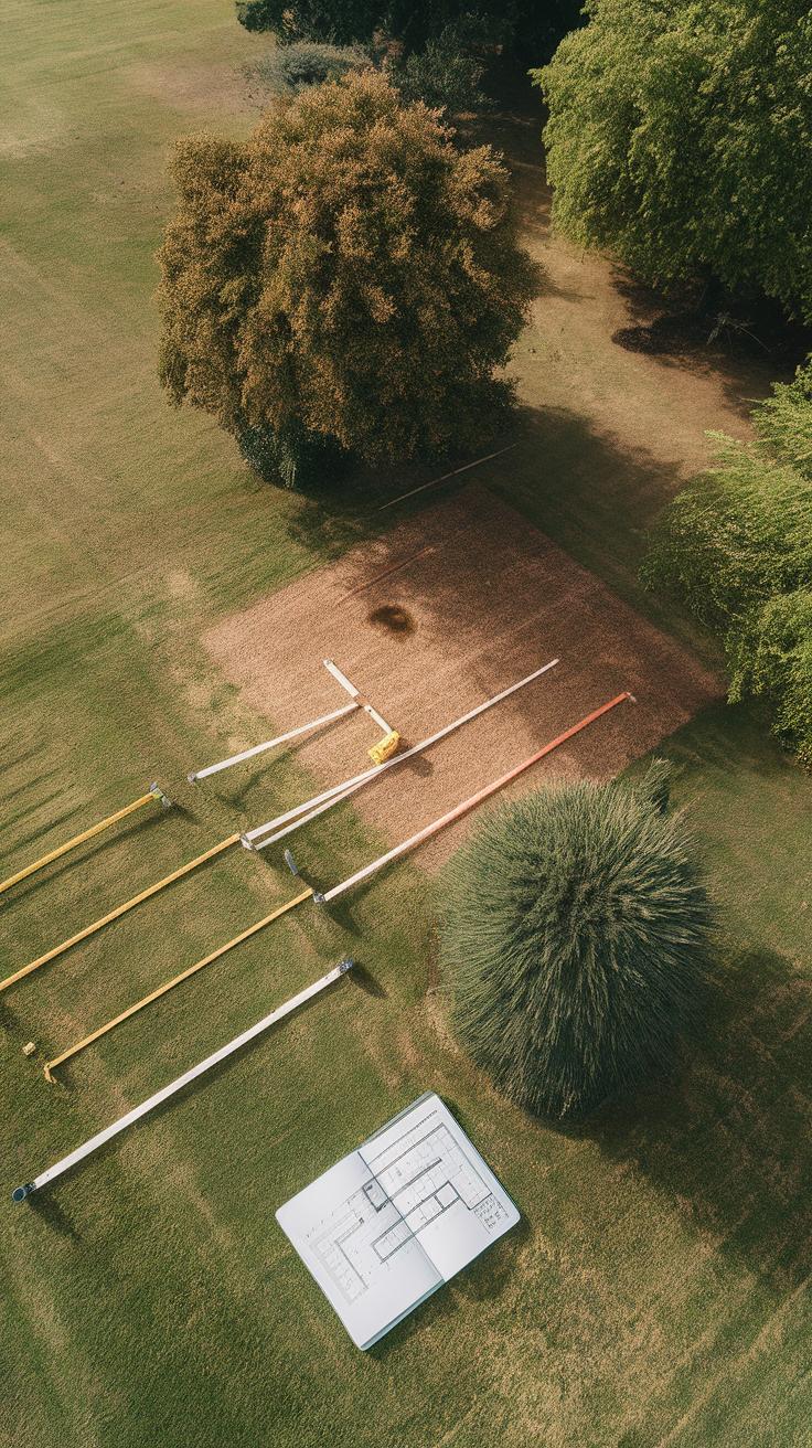 Begin measuring your yard precisely. Use a tape measure and sketch a simple map to scale. Mark boundaries, fixed structures, and notable features.