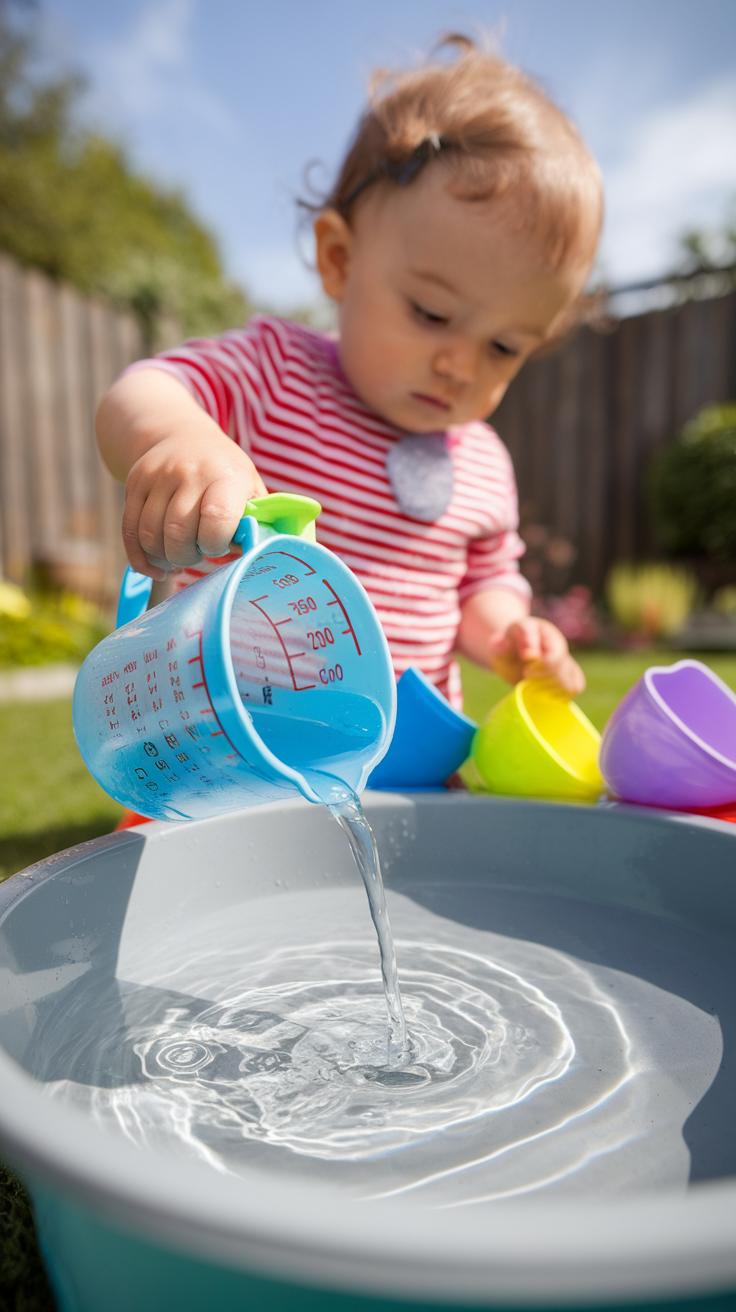 Water play helps improve hand-eye coordination by encouraging precise movements like pouring and scooping. When toddlers fill containers, they practice controlling their hands and fingers. Water also invites experimentation, as children test what floats or sinks, or how much water different containers hold. This encourages problem-solving and curiosity. The sensory experience of water—with its cool temperature and flowing movement—can calm toddlers and reduce frustration. Many parents find water play helps their child focus and relax after more active activities. Do you notice your toddler becomes more patient or engaged during water sessions? These moments can support emotional regulation and calmness while building important skills.