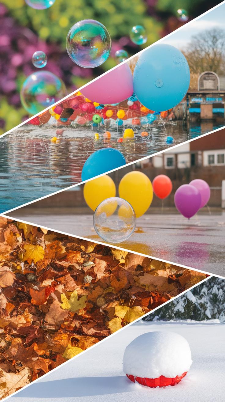 In fall, use fallen leaves for games like leaf pile hide-and-seek or leaf-catching contests. When it’s winter, dress kids in waterproof clothes and boots to stay warm. Consider games that involve building snow forts or treasure hunts using winter-themed clues.