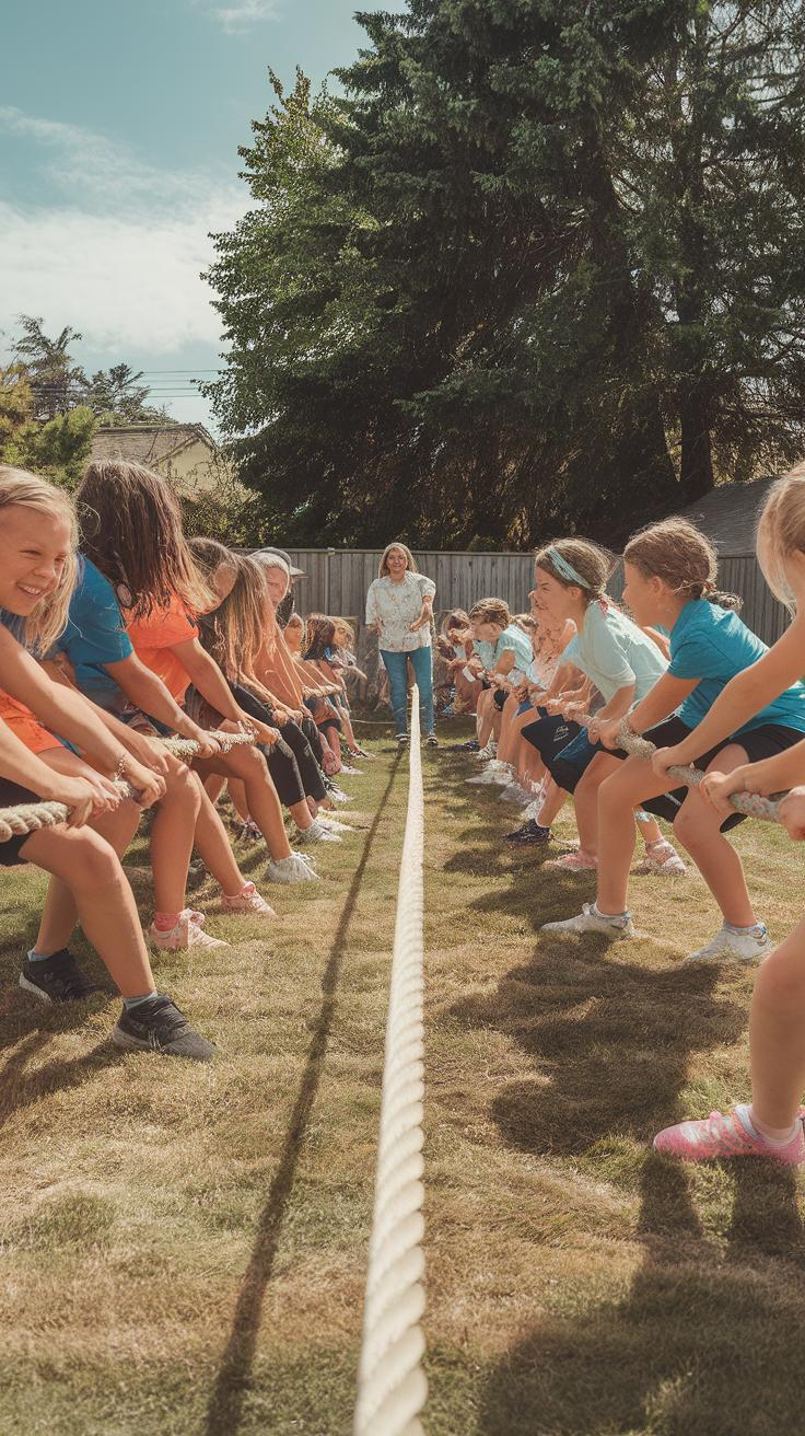 Jump rope uses just a rope, either held by two players swinging it or swung by one player. Players jump over the rope rhythmically. This game boosts coordination and stamina. Simple games like these transform your yard into a playground of active fun and bonding.