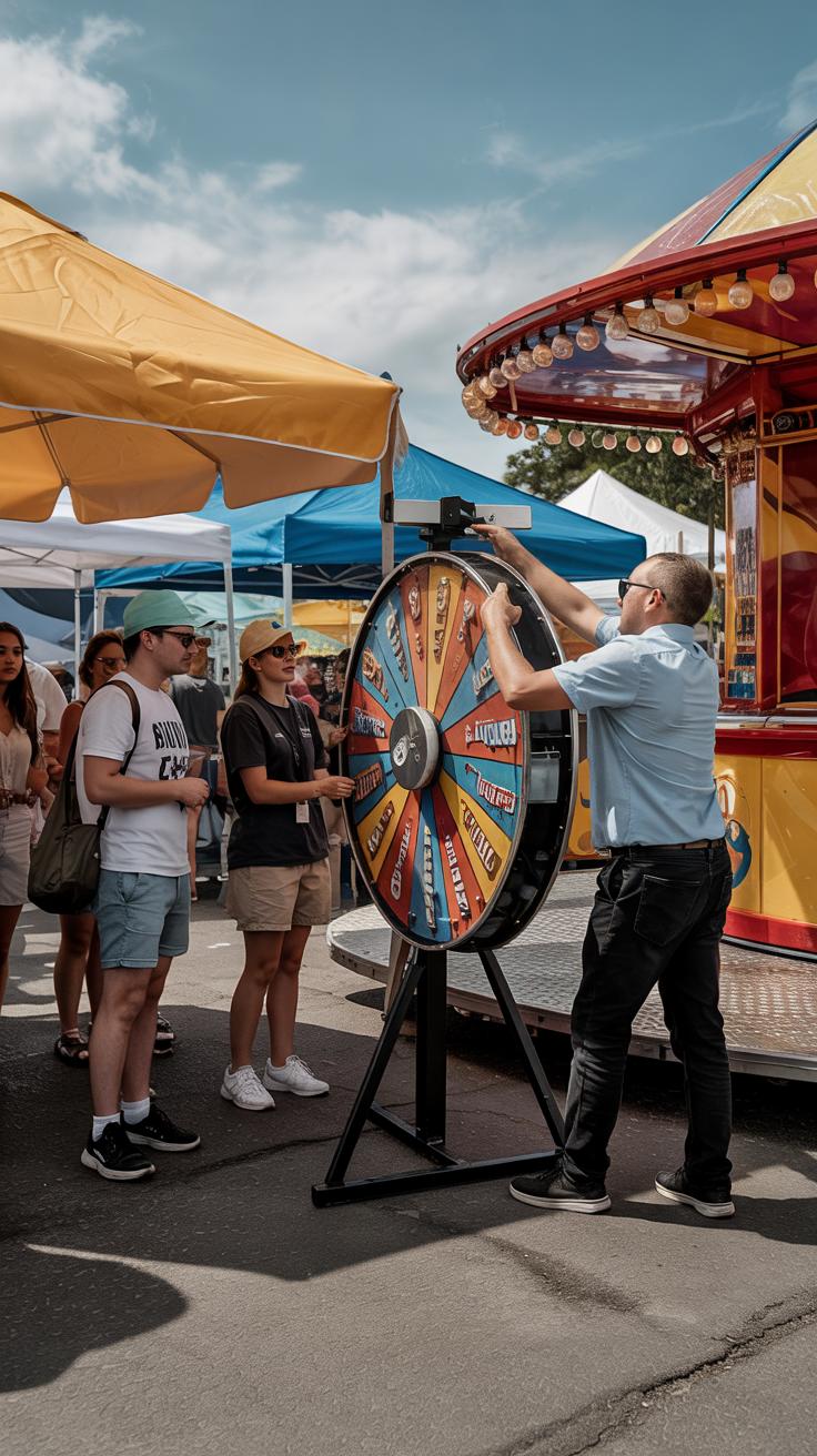 Obstacle courses challenge participants physically and make the event lively. Mystery boxes build curiosity, encouraging visitors to take chances to win prizes. Digital spin wheels add a modern twist and allow quick, engaging play with instant rewards.