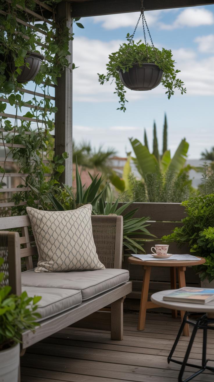 - Comfortable cushions and outdoor rugs to soften seating areas