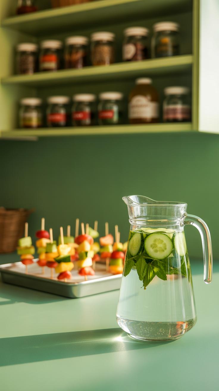 Create a dedicated space for healthy snacks and drinks to keep your body nourished during your spa day. Hydration supports relaxation and helps your body flush out toxins effectively. Think beyond plain water by preparing a variety of light, fresh options that are easy to reach. How often do you pause to hydrate properly when relaxing at home?