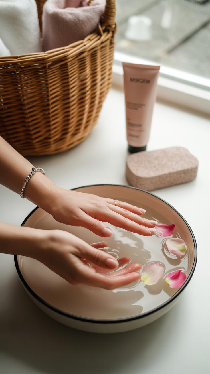 Once relaxed, apply a thick, rich lotion or cream. Rub it in fully, covering cuticles and nails to prevent dryness. This helps soften the skin and keeps it hydrated for hours. You might find this step turns routine care into a peaceful moment for yourself. How often do you pause to give your hands and feet this kind of focused attention?