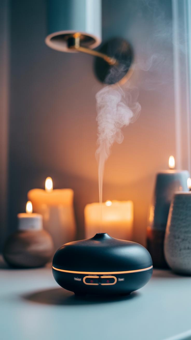 Scent plays a powerful role in shaping your atmosphere. Essential oils such as lavender, chamomile, or eucalyptus calm your nervous system. Use a diffuser or light scented candles to fill your room gently.