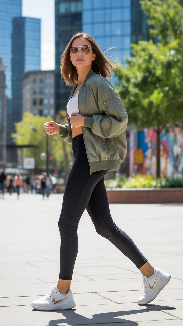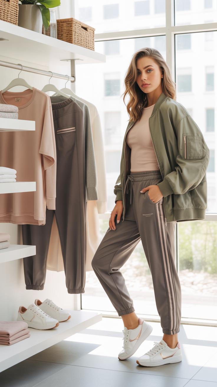 When temperatures start rising, keeping that sporty chic vibe means focusing on light, breathable layers and clean, comfortable footwear. Imagine pairing a fitted white tank top with high-waisted jogger pants in a soft cotton blend. Throw on a lightweight bomber jacket or a cropped denim jacket for those breezy spring mornings—you might feel a bit unsure about the jacket at first, but it really pulls the look together.