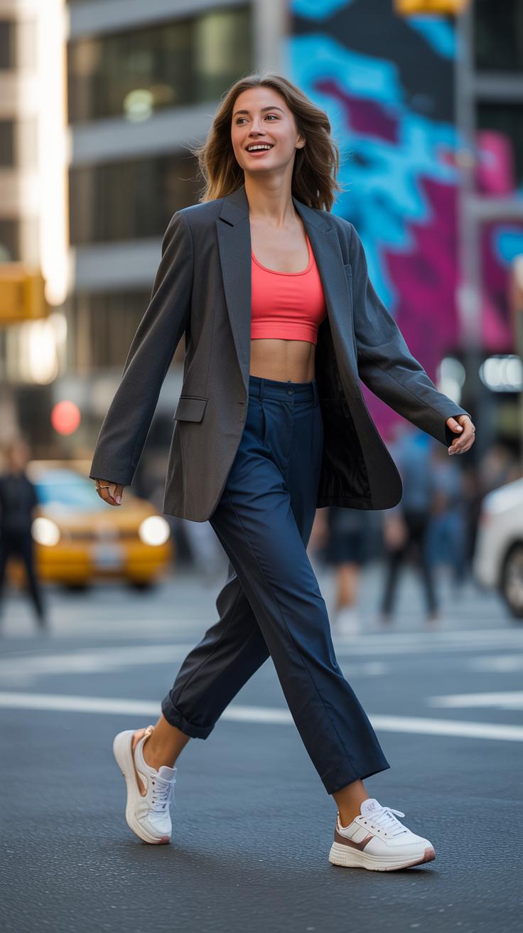Imagine sneakers paired with dress pants—this isn’t just casual anymore. Crisp white sneakers with slim black trousers create a look that’s polished but relaxed. Sometimes, a sophisticated blazer thrown over a hoodie softens the sportiness, making it office-friendly or weekend-ready.