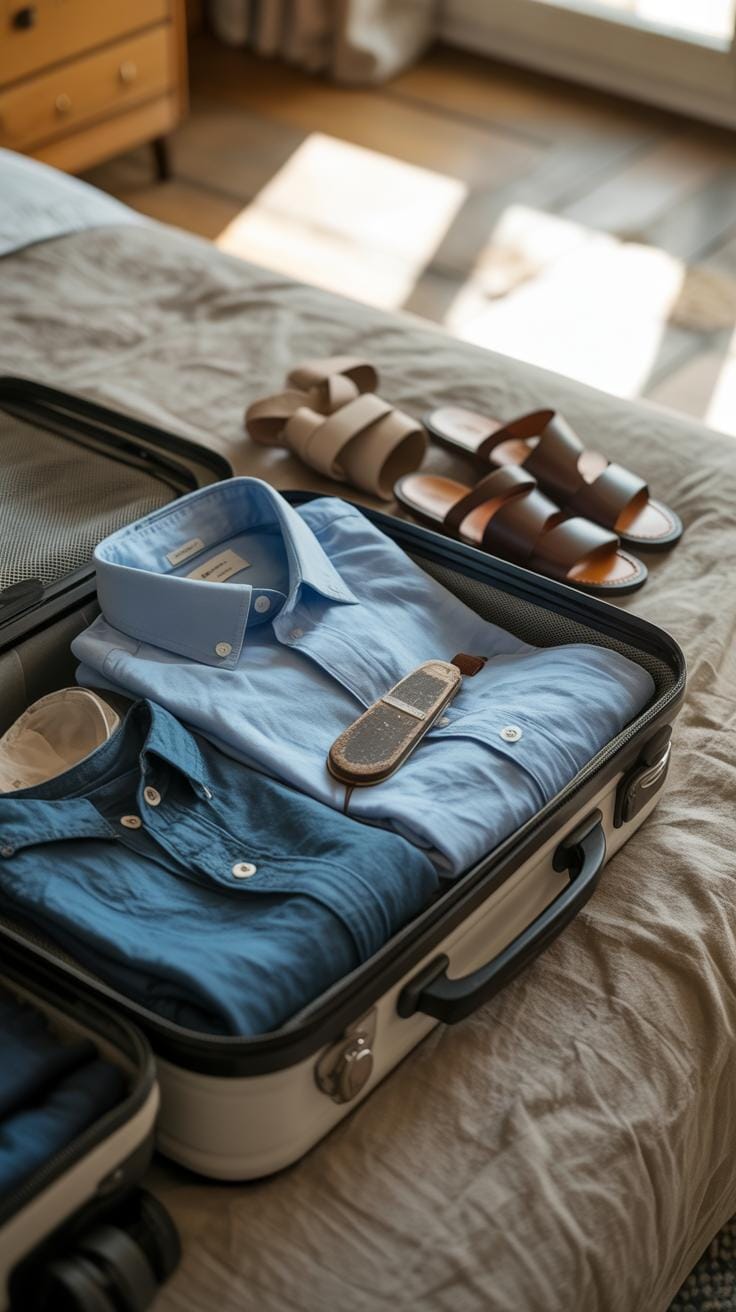 - Day 4 (Beach & City): Swimsuit under shorts with tank top, add sandals and cardigan for cooler evening.
