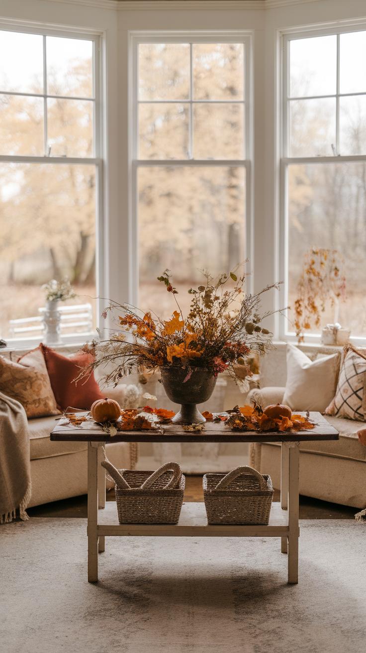 Shifting your vintage farmhouse decor with the seasons adds freshness and keeps your space inviting. Start with autumn; incorporate warm colors like burnt orange, deep reds, and browns. Use hay bales, pumpkins, and cozy throws to create a harvest theme. Transition into winter by swapping out autumn decorations for festive pinecones, evergreen garlands, and soft white lights. Such pieces bring warmth amid the colder weather.