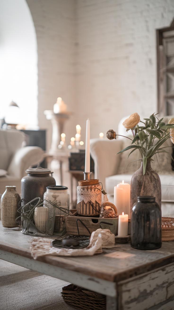 Layering different textures and heights helps build an engaging focal point. Incorporate vintage elements like old books stacked under a rustic lantern or a reclaimed wood shelf adorned with unique finds. This arrangement not only adds depth but also reflects personal style. Mixing materials, such as metal, wood, and fabric, creates a dynamic display that transforms a simple space into an eye-catching area.