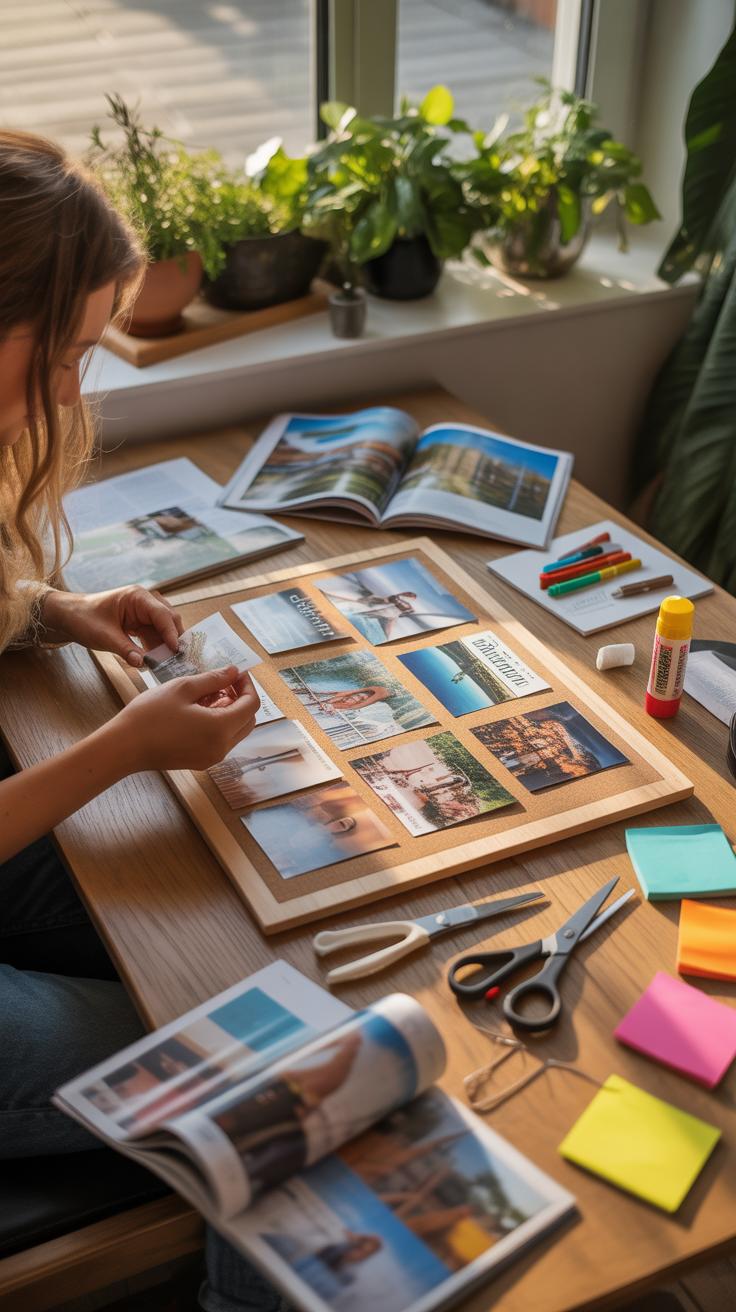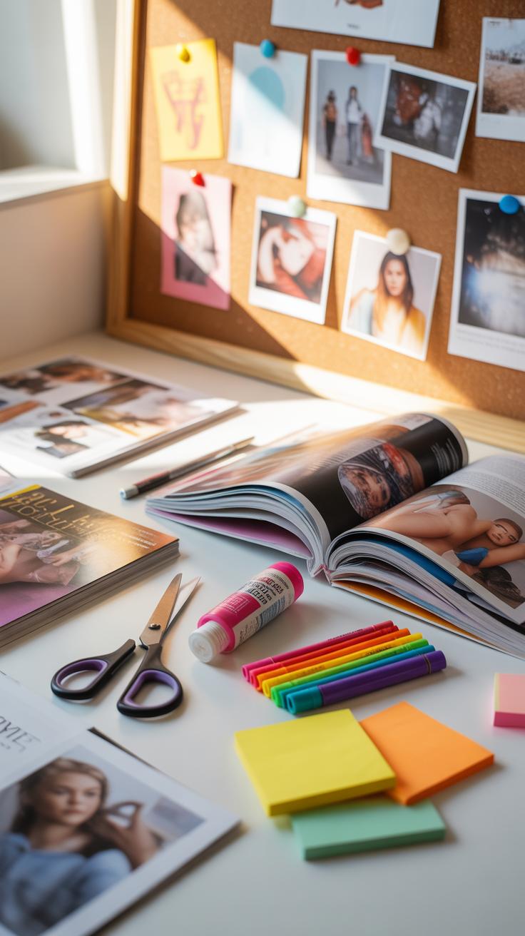 Not keen on digital? That’s fine. Hands-on vision boards can be just as powerful. Gather these basic supplies: a large poster board or corkboard, scissors, glue or push pins, and magazines or printed images related to fitness and health. You might add markers to write motivational quotes or your target achievements.