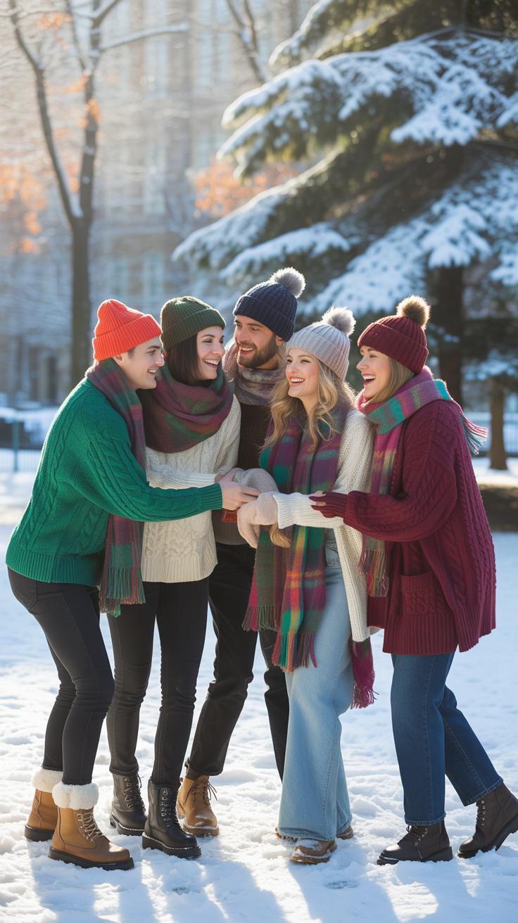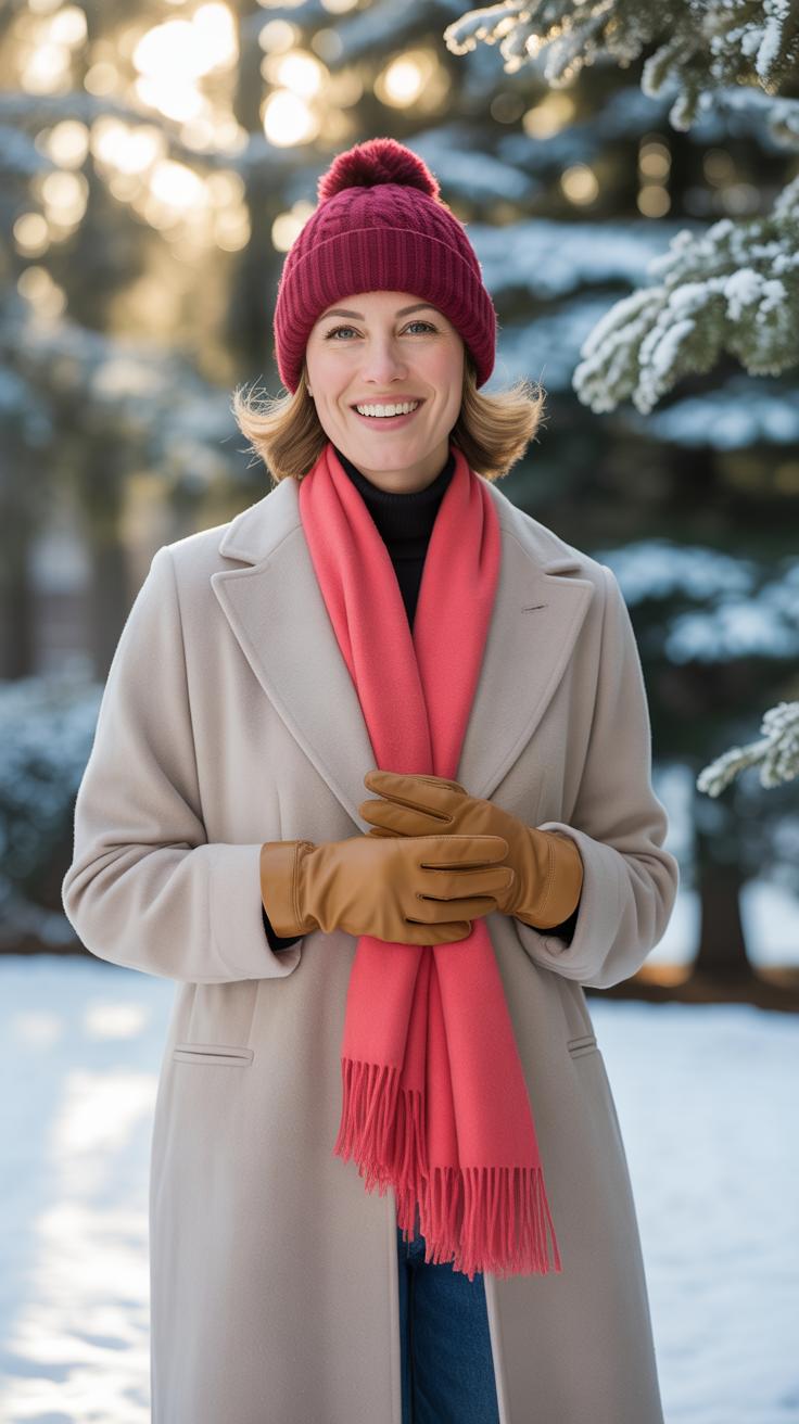 Gloves need to do more than look good—they have to keep cold out. Leather gloves lined with fleece or wool are a popular pick because they balance style with warmth. But I also like knit gloves that match the scarf. It gives this kind of put-together vibe, even if it seems a little coordinated—perhaps a bit old-fashioned, but it works.