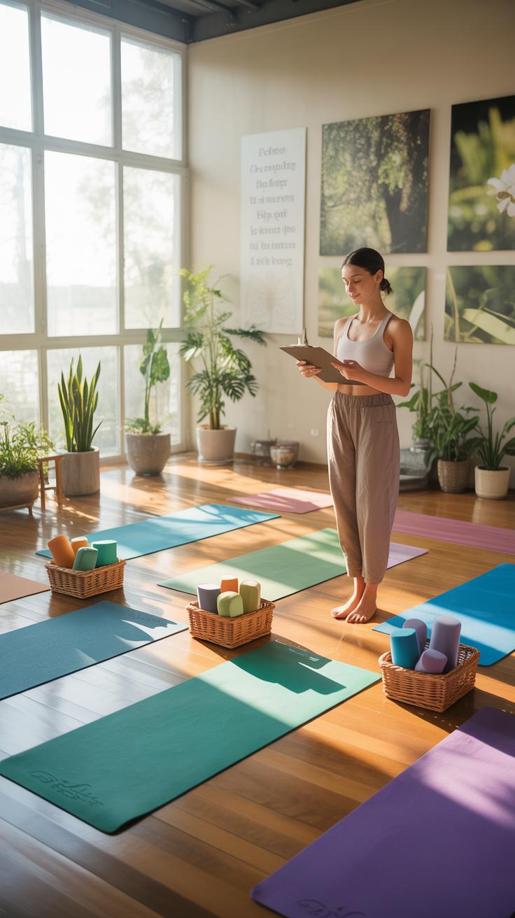 Then there’s the general layout. You want a flexible setup that allows for different class sizes and styles, from meditation to more dynamic sequences. Think about the flow, how students move between poses, and how instructors can see and support everyone easily.